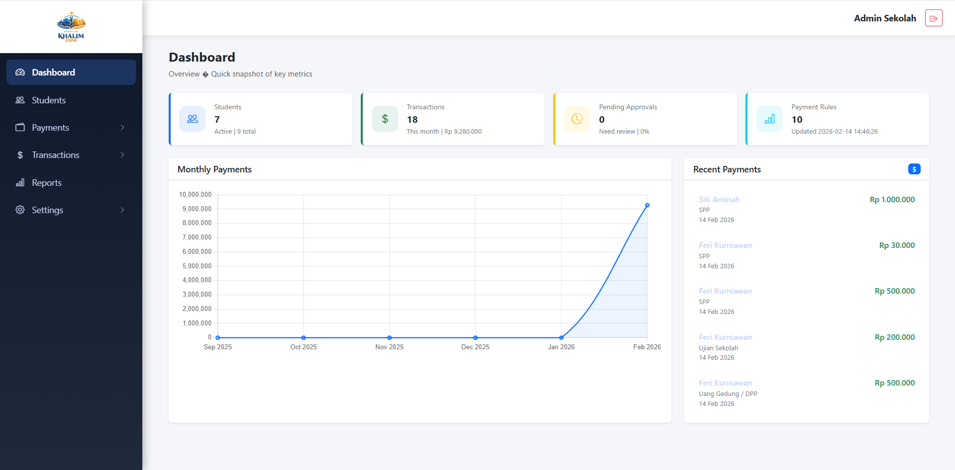 School Payment System membantu institusi pendidikan bertransformasi menuju sistem administrasi digital yang lebih efisien, akurat, dan mudah dikembangkan untuk kebutuhan jangka panjang.
