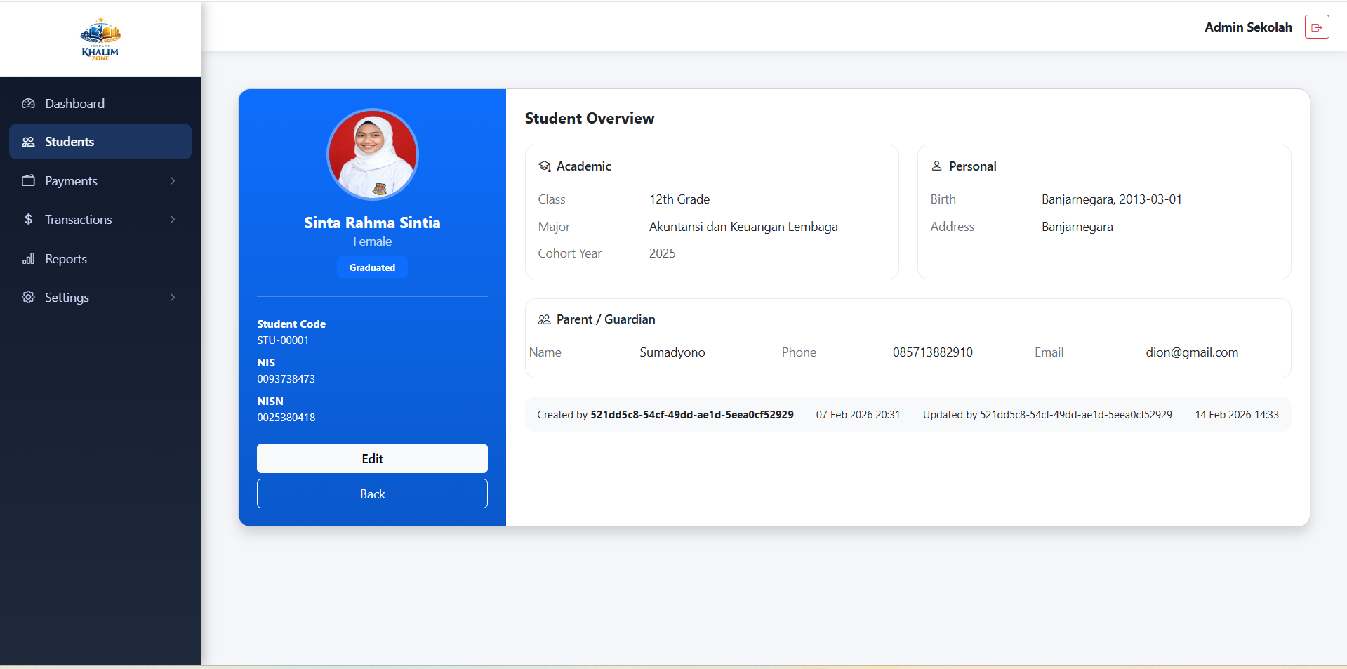- Memastikan setiap siswa mendapatkan tagihan yang sesuai.
